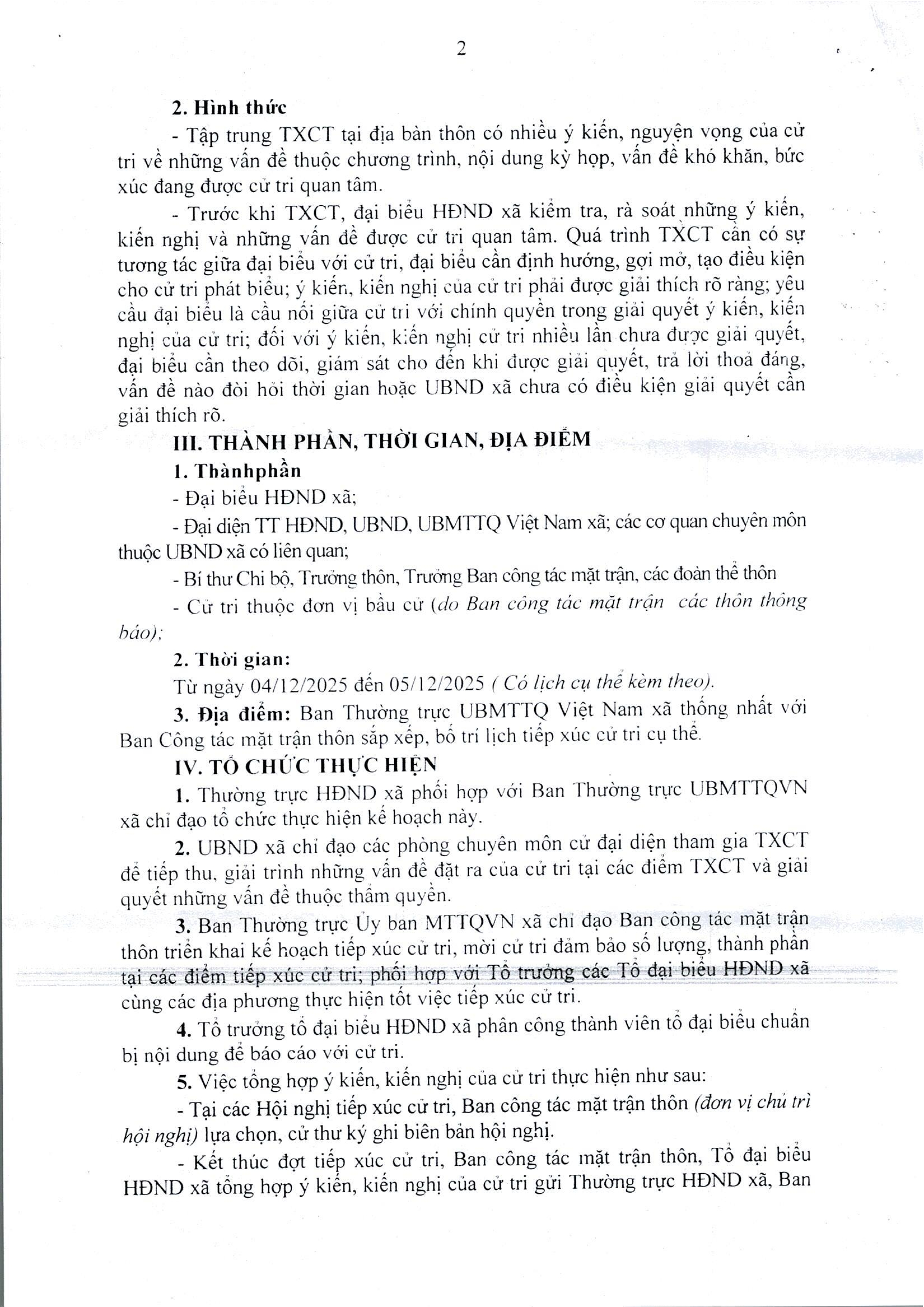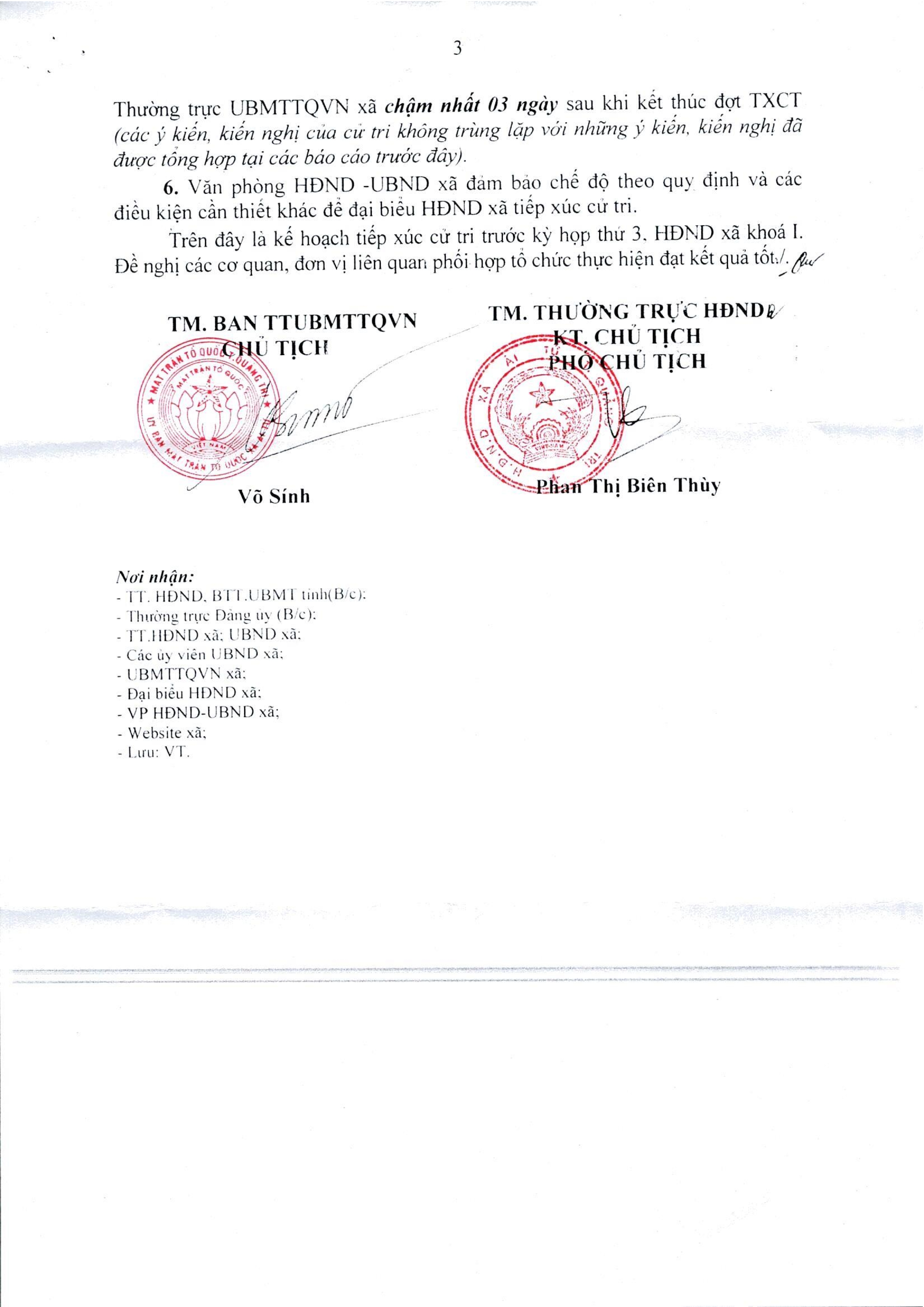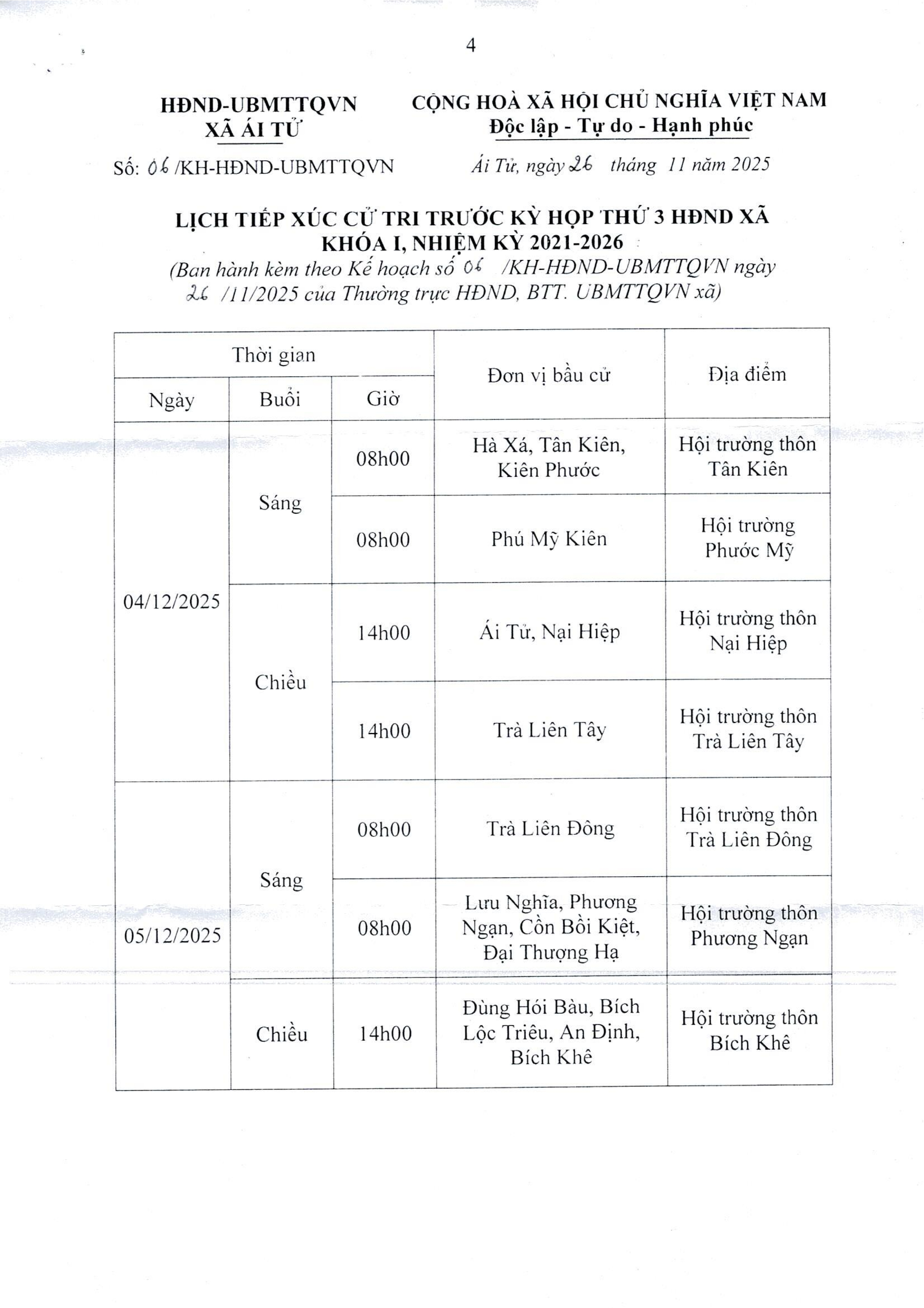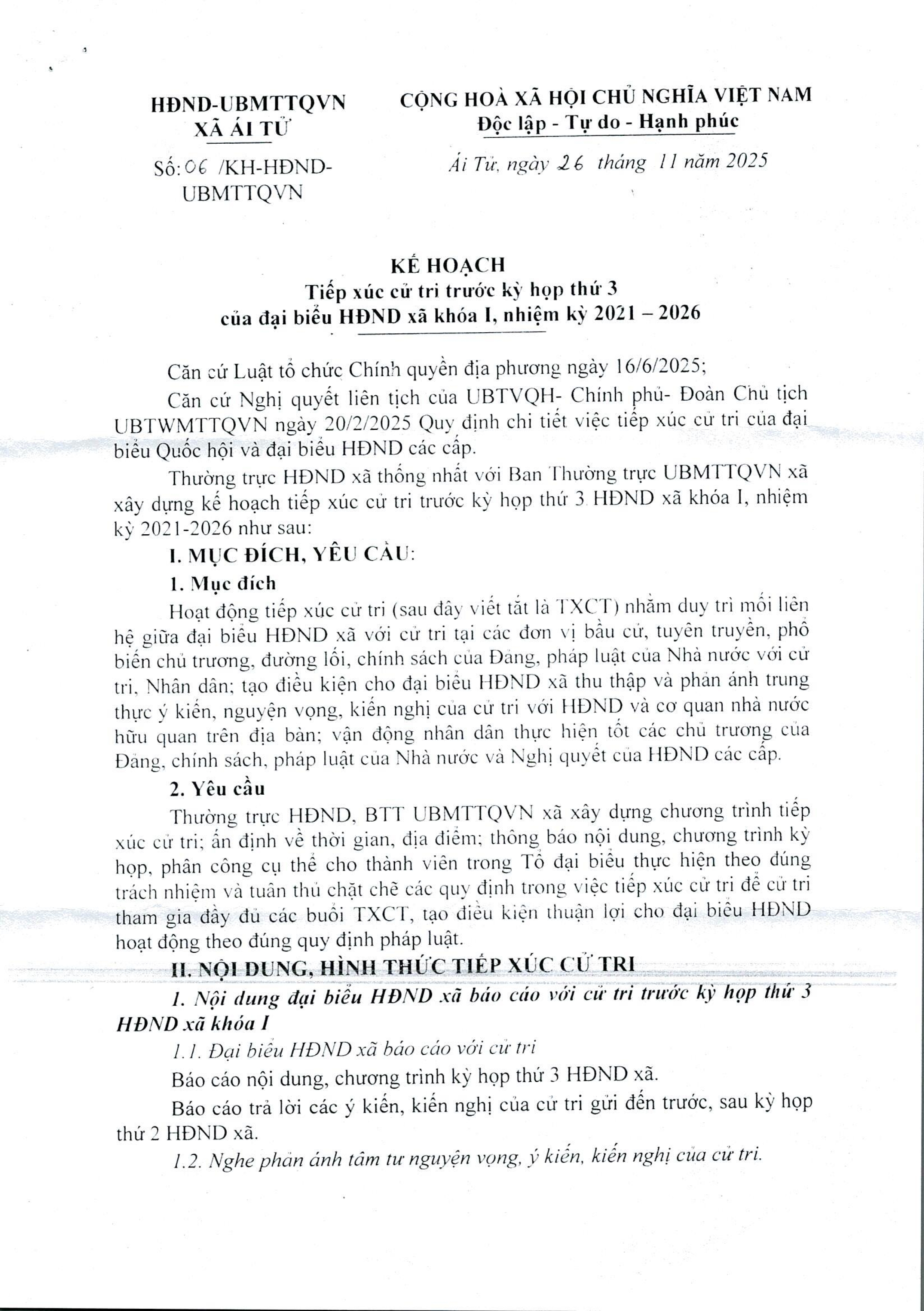 Kế hoạch tiếp xúc cử tri trước kỳ họp thứ 3 của đại biểu HĐND xã khoá I, nhiệm kỳ 2021-2026