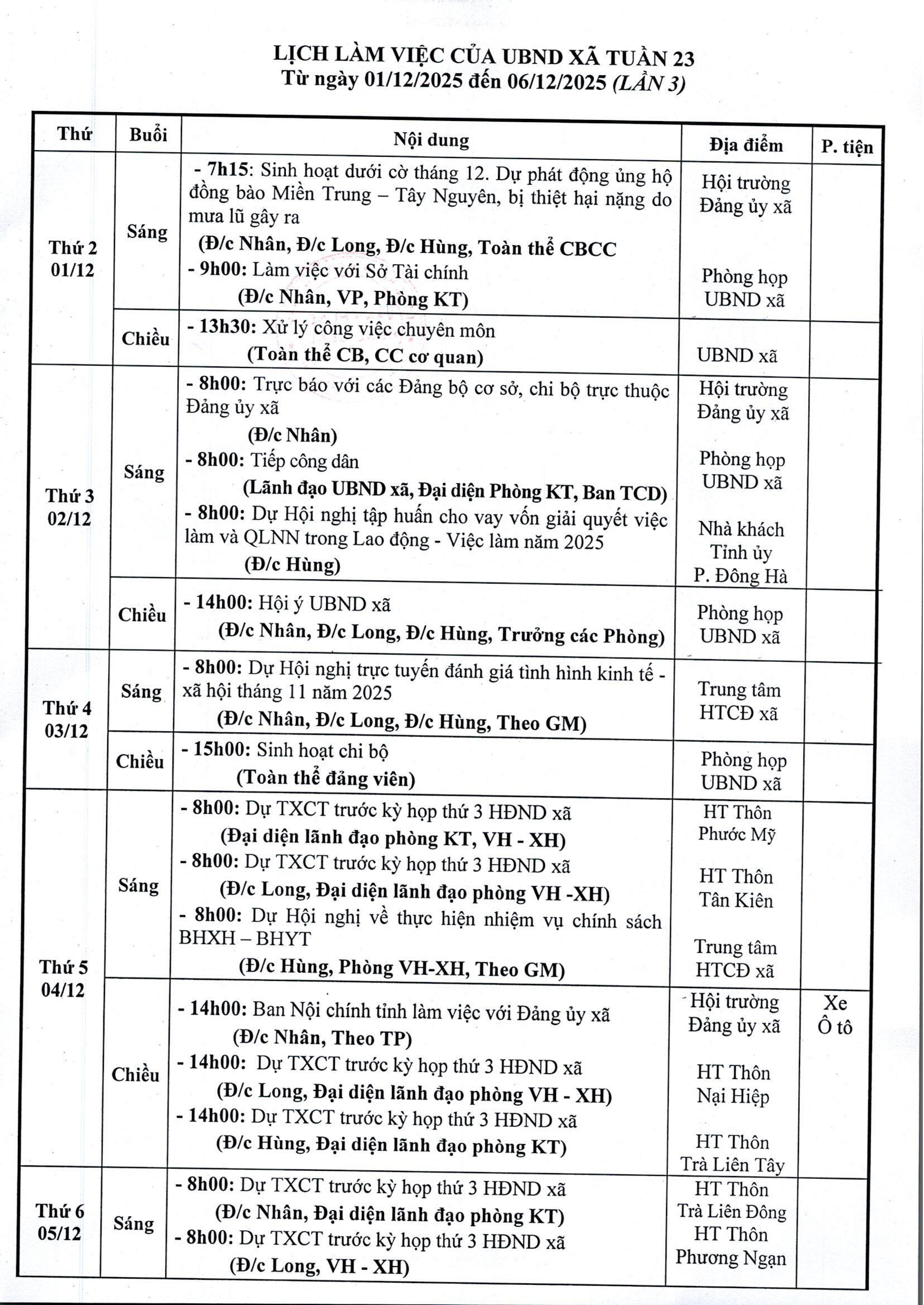 - Lịch làm việc của UBND xã từ ngày 01 đến 07 tháng 9 (03/09/2025)